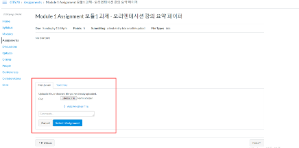 After selecting File Upload or Text Entry, click “Submit Assignment” to complete the submission. Important thing to remember is that all lectures, discussions, and assignment submissions is done in the Modules.